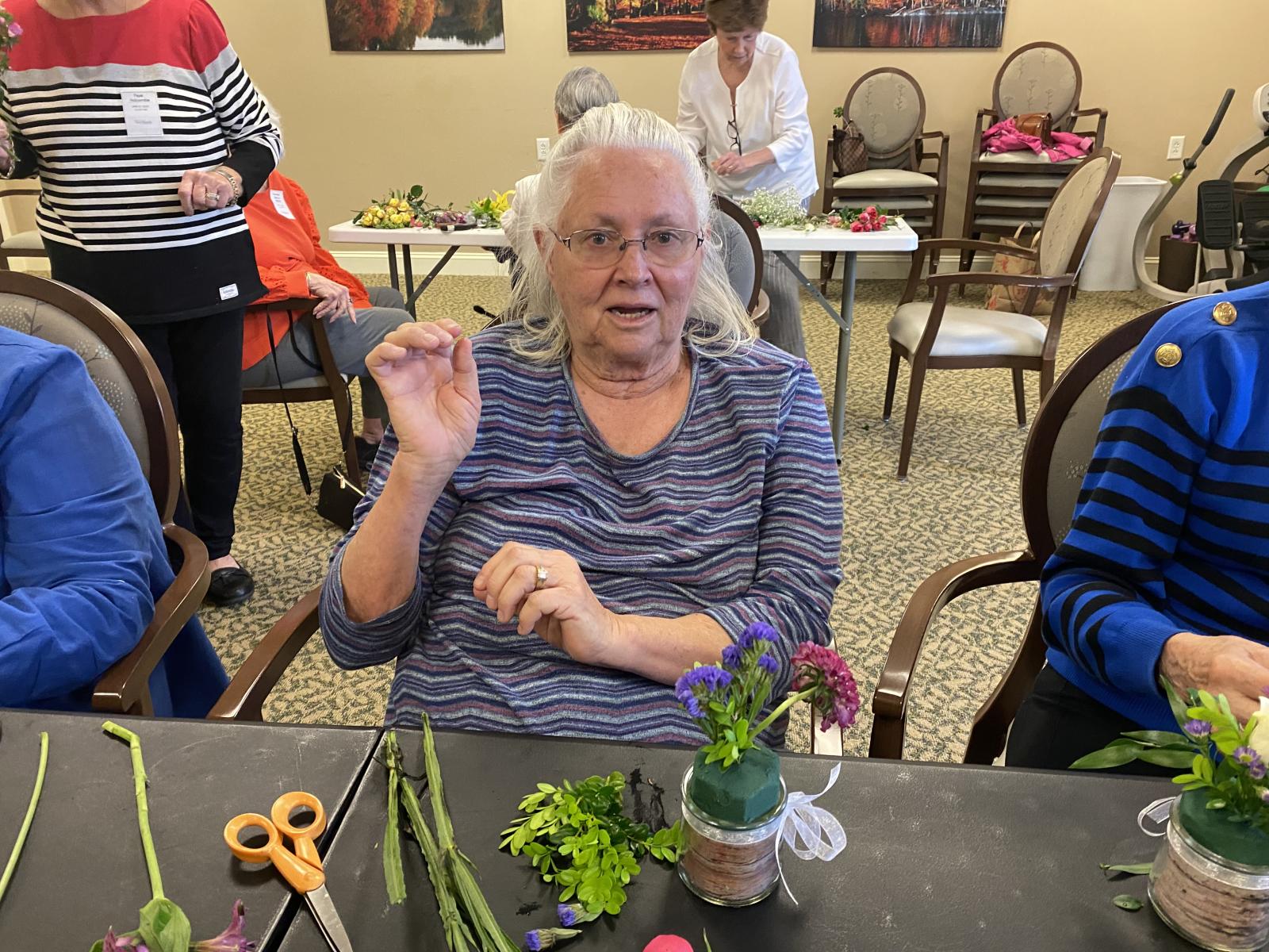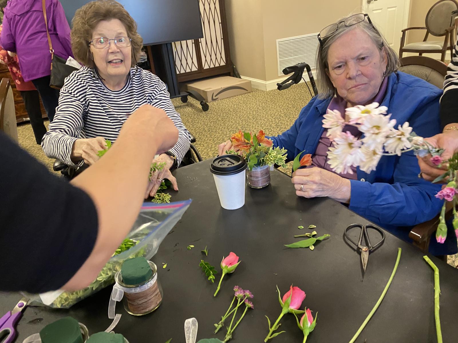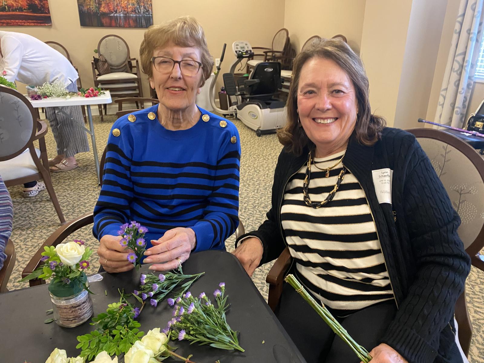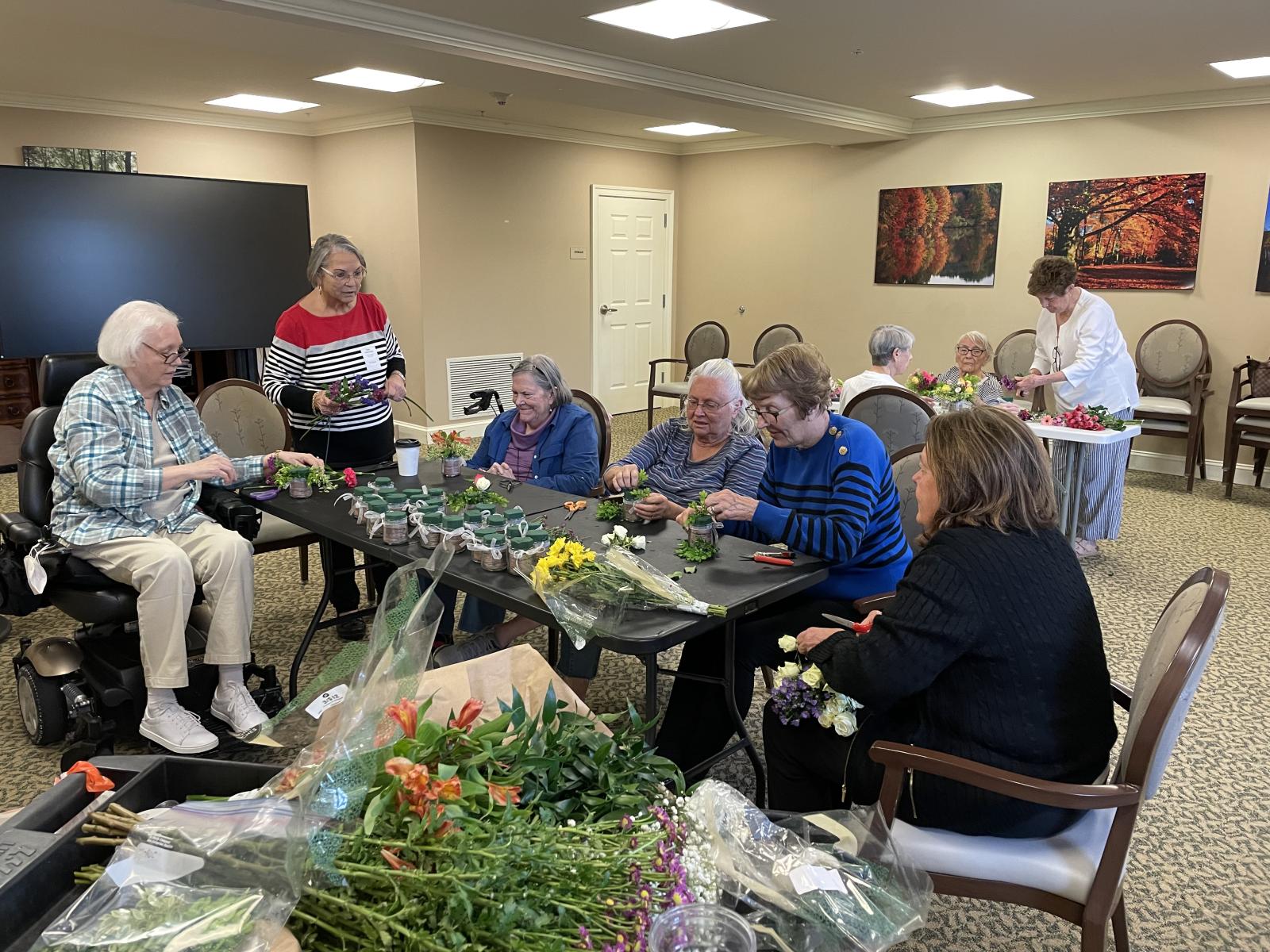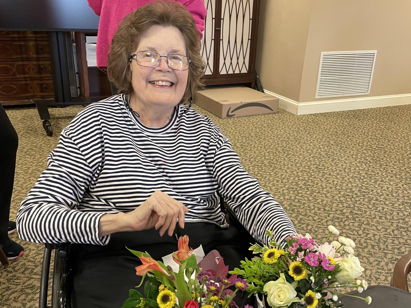 Bringing joy to seniors in a nursing home facility with bouquets.